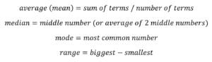 Something you’re also likely comfortable with, but just double-check that these all make sense to you. Sometimes students mistake range for the number of values in a set, or mistake mean and median for each other.